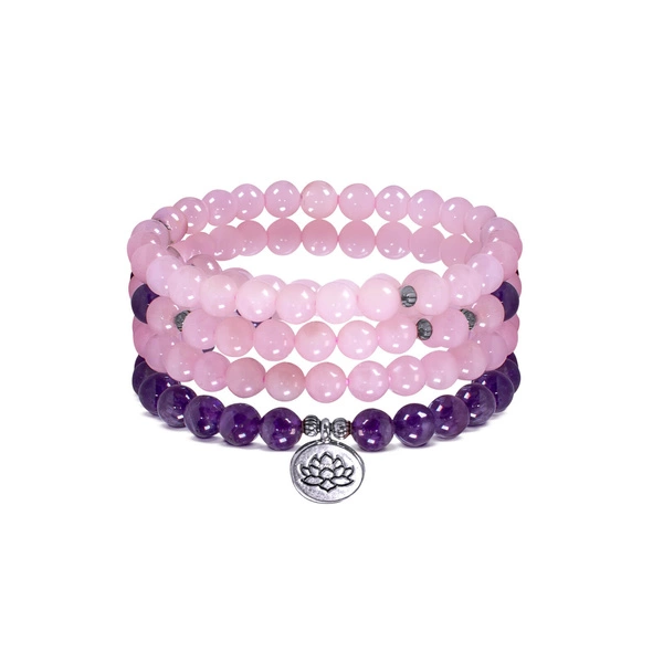 Armband Mala mit Amethyst und Rosenquarz – Lotosblume