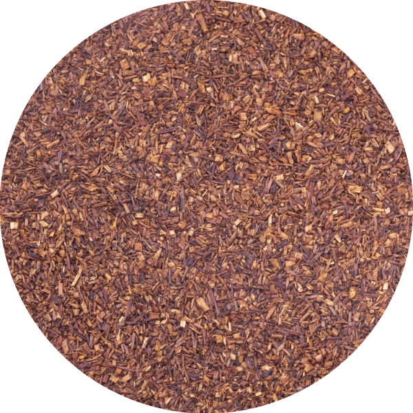 Rooibos (Aspalathus linearis), auch als Rotbusch bekannt, ist eine natürliche Alternative zu klassischen Blatt-Tees. Er hat einen milden, leicht honigartigen Geschmack und eine tief rötliche Bernsteinfarbe. Da er von Natur aus entkoffeiniert ist, eignet er sich hervorragend als Getränk zu jeder Tageszeit - auch am Abend.