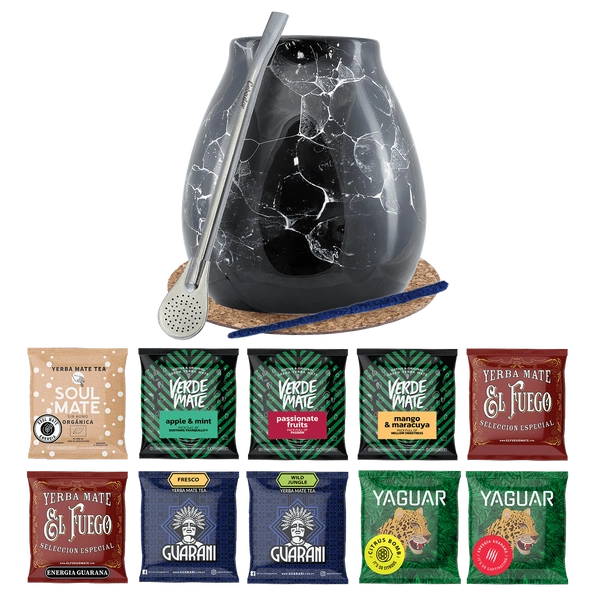 Mate Tee Set 10x50g Kalebasse Marmol Bombilla