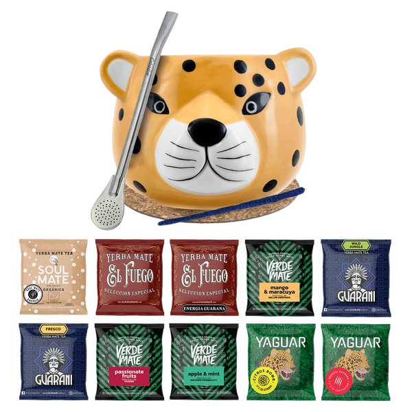 Yerba Mate Set 10x50g Kalebasse Gatito Bombilla