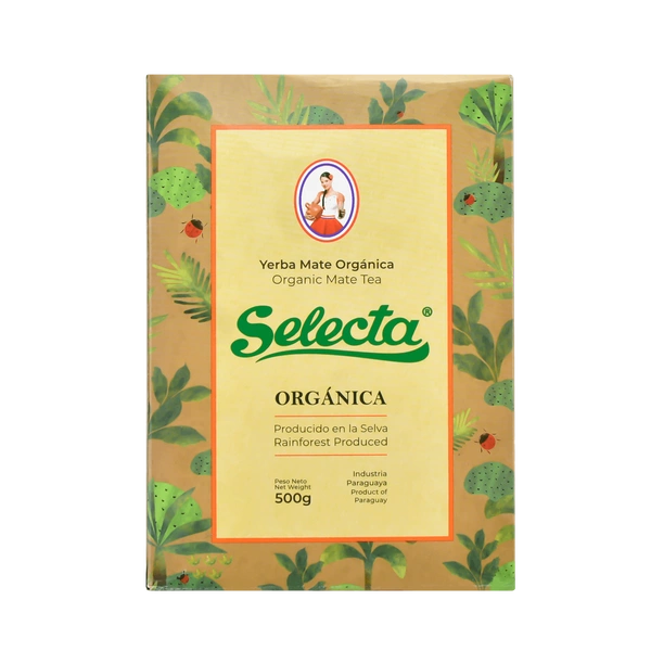 Selecta Orgánica, also organischer Mate Tee ohne Zusatzstoffe. Selecta ist eine paraguayische Marke, die eine jahrelange Erfahrung in der Herstellung des Mate Tees hat, für deren weltweiten Erfolg die berühmte Firma EBSA verantwortlich ist. Mate Tee wird in zwei Schichten verpackt - in einer Pappschachtel, in der sich ein dicht verschlossener Beutel mit getrockneten Blättern befindet. Obwohl er aus Paraguay stammt, weicht er etwas von den Standards des typischen Mate Tees aus diesem Land ab. Er ist recht intensiv in Geschmack und Aroma, aber die rauchigen Akzente sind hier kaum wahrnehmbar.