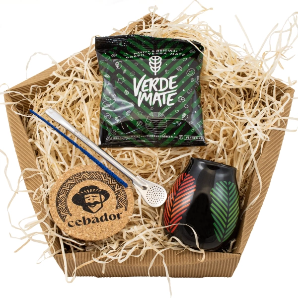 Geschenkset Mate Tee: Verde Mate Frutos Tropicales 50g + Kalebasse + Bombilla
