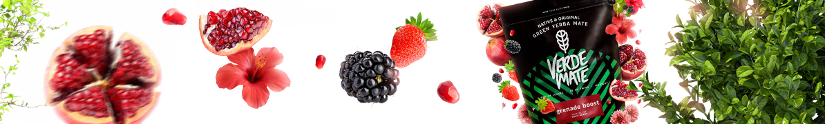 - Verde Mate Green Grenade Boost ist eine Kombination, die nicht von dieser Welt ist. Granatapfelkerne und süße Erdbeeren spielen die erste Geige, begleitet von Acerola und anregendem Guarana. Das wird deine Sinne zum Explodieren bringen!