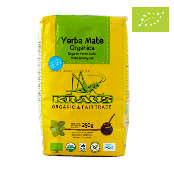 - Kraus Organica ist absolut natürlicher Mate Tee. Seine Sträucher wachsen auf einer grünen Plantage im Einklang mit der Umwelt.