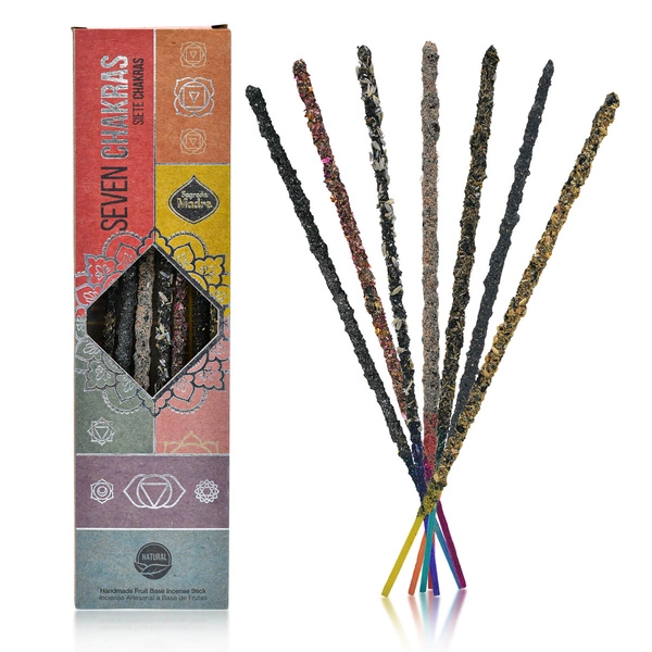 Argentinische Räucherstäbche Sagrada Madre sind handgefertigte, sorgfältig ausgewählte Kompositionen aus natürlichen Zutaten: ätherische Öle, Harze, Kräuter und Salze, die mit ihren einzigartigen Düften begeistern. Die Packung enthält sieben Räucherstäbchen mit unterschiedlichen Düften - jedes entspricht einem der sieben Chakren.