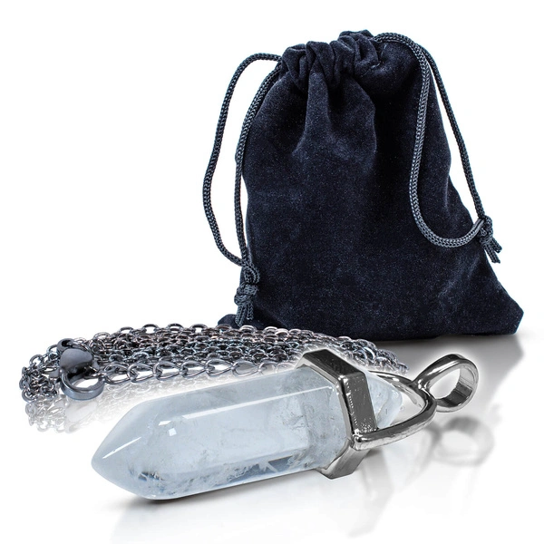 Bergkristall-Anhänger im Beutel + Kette