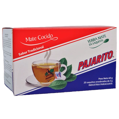 - Bekannter Mate Tee aus Paraguay Pajarito in Teebeuteln. Jeder Beutel enthält 3 g Mate Tee in klassischer Variante ohne Zusatzstoffe. Eine perfekte Alternative zum traditionellen Brauen.