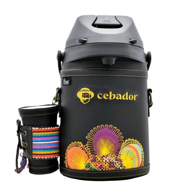 - Der "Pozo de Agua" ist eine große Thermoskanne mit einem Fassungsvermögen von 2,5 Litern, die mit dem Cebador-Logo versehen ist. Der Behälter des Zubehörs ist aus rostfreiem Stahl gefertigt und doppelwandig.