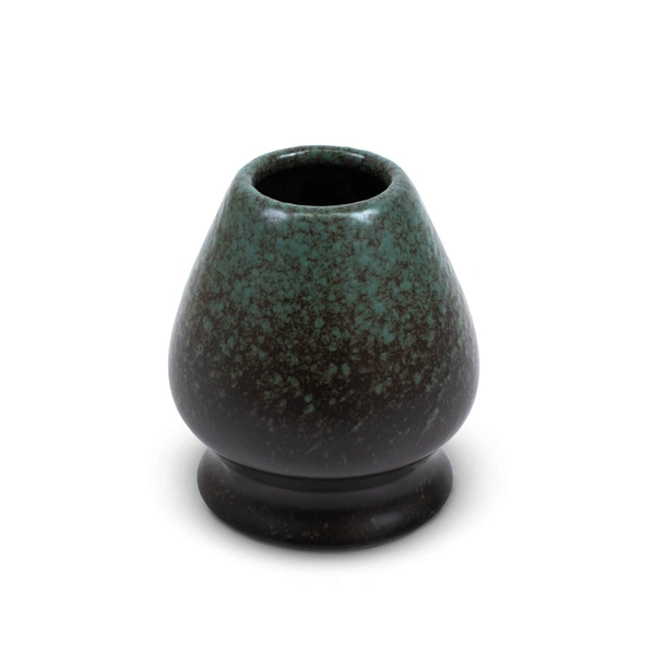 - Der Keramikhalter kusenaoshi "Umi" dient der praktischen Aufbewahrung des Bambusbesen - chasen. Seine türkis-graue Glasur, inspiriert von den Tiefen des Meeres, verleiht ihm einen einzigartigen Charakter und ergänzt perfekt den Matchawan aus derselben Kol