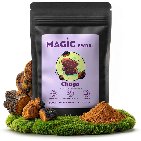 - Magic Pwdr Chaga ist ein 10:1-Extrakt aus den Fruchtkörpern des Chaga-Pilzes in Pulverform. Er verfügt über antioxidative Eigenschaften und unterstützt die natürlichen Abwehrkräfte des Körpers.