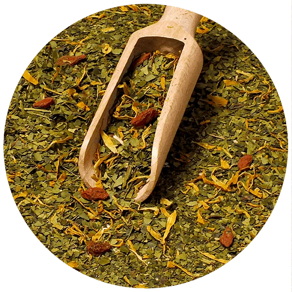 - 🌱 Zutaten: 93,3% Mate Tee, 1,9% Guarana, Goji-Beeren, Ringelblumenblüten, natürliche Aromen