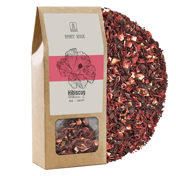 • Hibiskus 50 g der Marke Mary Rose ist als Sudan-Malve bekannt. Wegen der zahlreichen Eigenschaften und des säuerlichen Geschmacks hat Hibiskusblüte seit Jahrhunderten viele Anwendungen.