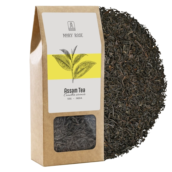 - Schwarzer Tee Mary Rose wird im indischen Bundesstaat Assam im Nordosten des Landes angebaut. Er wird aus jungen, kräftigen Blättern und Knospen hergestellt. Nach dem Aufbrühen entsteht ein geschmackvoller, wie Malz-Aufguss mit einer herben Textur.