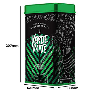 Sie suchen nach einer praktischen Aufbewahrungsmöglichkeit für Ihre Lieblings-Mate-Tee? Entscheiden Sie sich für Verde Mate Green Limón in einer Metalldose - Yerbera mit praktischem Spender, der die Blätter frisch hält und das Portionieren erleichtert! 🌿💚