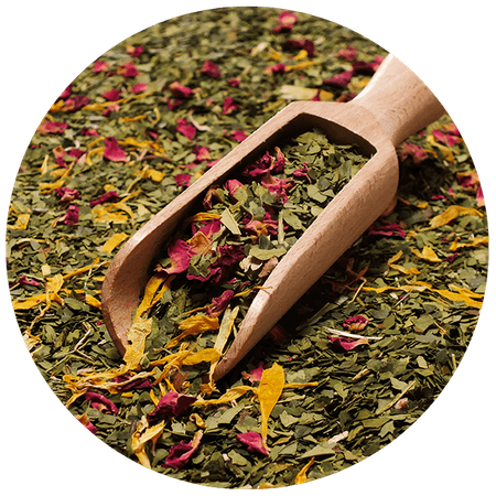 • 🌱 Zutaten: 87,5% Mate Tee, 10% Erdbeere, Rosenblütenblätter, Ringelblumenblüten, natürliches Aroma