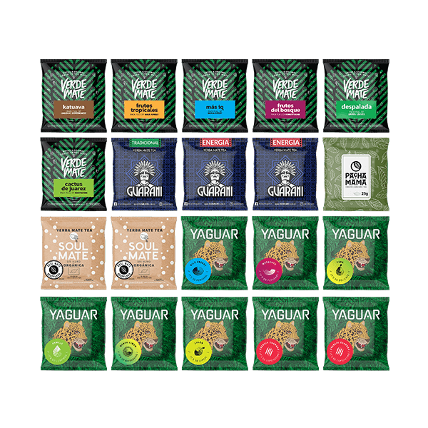 Sie beginnen gerade mit Ihrem Yerba-Abenteuer? Die Proben ermöglichen es Ihnen, die verschiedenen Arten von getrocknetem Tee kennen zu lernen: klassisch, aromatisiert, krautig, mit Guarana oder Minze. Kleine Päckchen sind eine gute Möglichkeit, sich schnell an die Intensität, das Aroma und die Wirkung von Yerba auf den Körper zu gewöhnen.