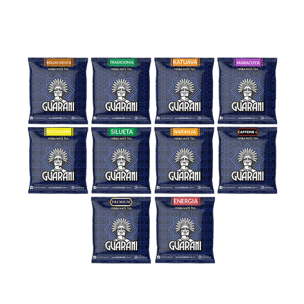 Bitte beachten Sie, dass die Namen der einzelnen Geschmacksrichtungen der Mate-Tee-Proben auf dem Rückenetikett direkt neben den Angaben zu den Inhaltsstoffen zu finden sind.