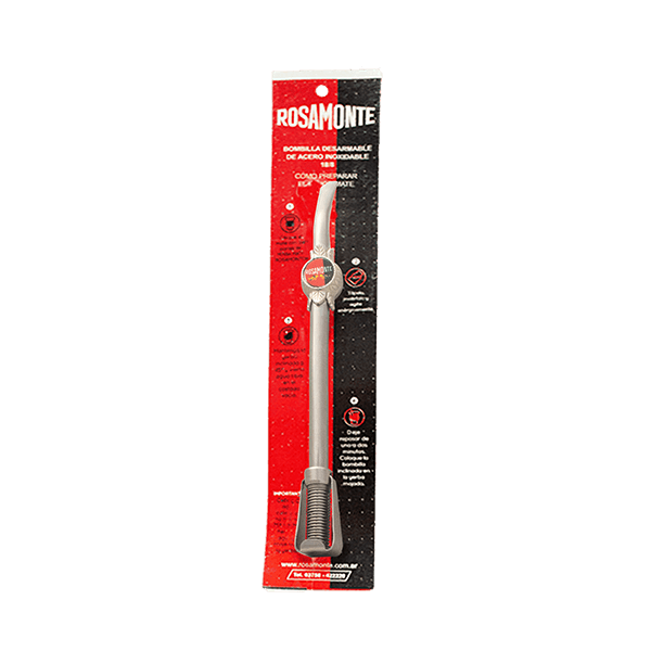 Sehr sorgfältig hergestellte Bombilla aus Edelstahl, leicht gekrümmt. Sie wurde von der bekannten und angesehenen Marke Rosamonte hergestellt. Das abgeschraubte Filterelement ermöglicht eine einfache und schnelle Reinigung. Sie wird aus Argentinien importiert.