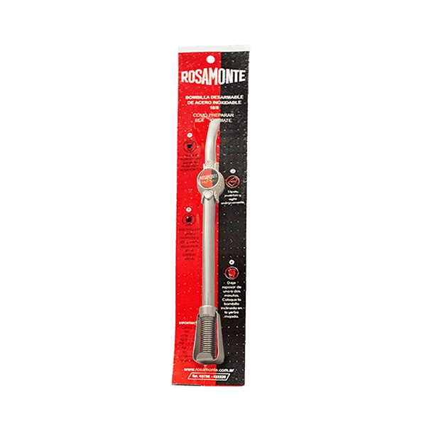 Sehr sorgfältig hergestellte Bombilla aus Edelstahl, leicht gekrümmt. Sie wurde von der bekannten und angesehenen Marke Rosamonte hergestellt. Das abgeschraubte Filterelement ermöglicht eine einfache und schnelle Reinigung. Sie wird aus Argentinien importiert.