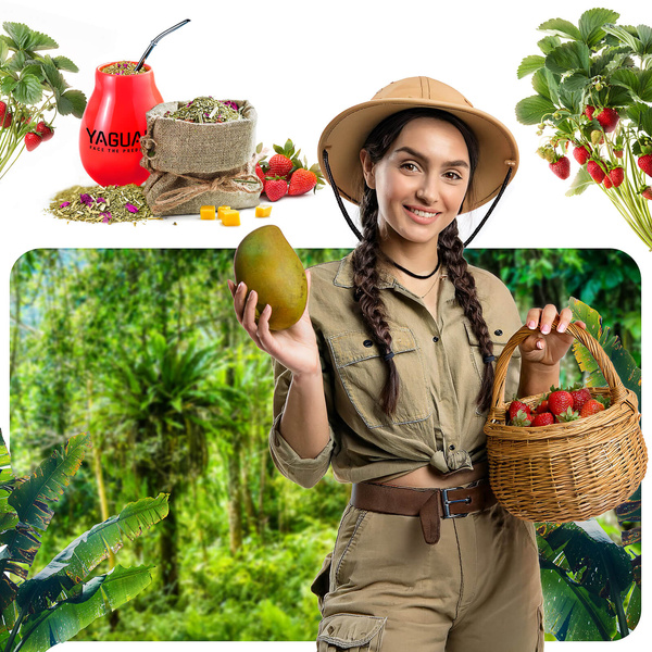 Yaguar Amore ist eine Mate Tee, die die Sinne verwöhnt - natürliche Energie und Genuss eingefangen in einer besonderen Mischung voller fruchtiger und blumiger Finesse. Das Herzstück dieser Mischung ist die aromatische brasilianische Mate Tee, angereichert mit süßer Erdbeere 🍓 und saftiger Mango 🥭, die ein harmonisches, subtil exotisches Geschmacksprofil ergeben.