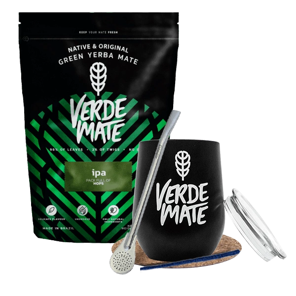 Mate Tee Set: Verde Mate IPA 500g + TermoLid + Bombilla