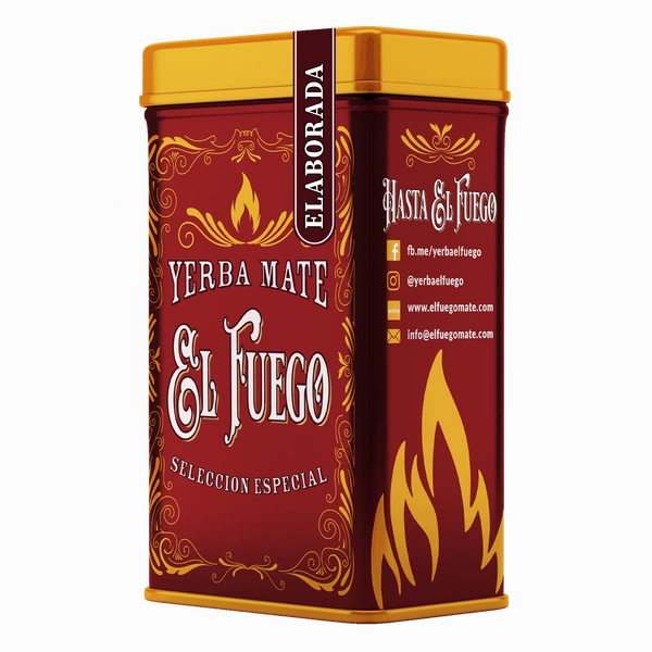 Sie suchen nach einer praktischen Aufbewahrungsmöglichkeit für Ihre Lieblings-Mate-Tee? Entscheiden Sie sich für El Fuego Elaborada in einer Metalldose - Yerbera mit praktischem Spender, der die Blätter frisch hält und das Portionieren erleichtert! 🌿💚