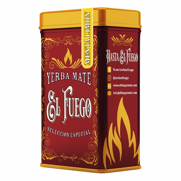 Sie suchen nach einer praktischen Aufbewahrungsmöglichkeit für Ihre Lieblings-Mate-Tee? Entscheiden Sie sich für El Fuego Menta Limon in einer Metalldose - Yerbera mit praktischem Spender, der die Blätter frisch hält und das Portionieren erleichtert! 🌿💚